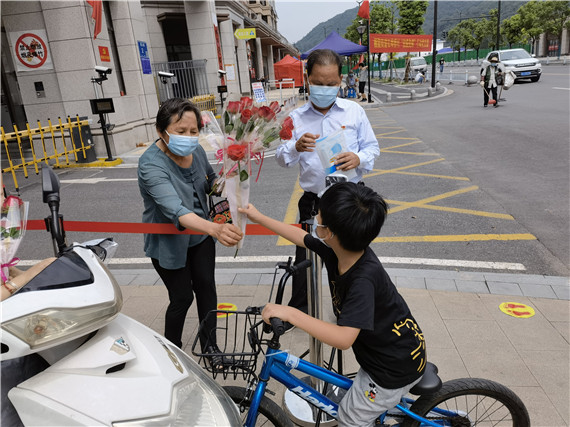 “七夕節(jié)快樂,出門要戴口罩做好防護(hù)哦!”一邊說話一邊遞口罩的是許寶林。他和他的妻子陳海霞結(jié)婚也有30年了,在中國傳統(tǒng)節(jié)日—七夕節(jié)這一天,他們買了口罩和玫瑰花,作為一點(diǎn)“小心意”,在這特殊的一天把這份美好的心意傳遞出去。夫妻二人,一人贈花一人遞口罩的畫面甚是恩愛。(通訊人:吳佳葉)