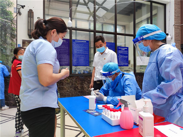 “你先回家休息,現(xiàn)場還有大家呢……”翟書記耐心開導(dǎo)現(xiàn)場疲憊感明顯的工作人員。在現(xiàn)場工作中,他提醒工作人員注意個人防護(hù),及時休息,有“硬骨頭”就丟給他。他是社區(qū)書記,更像一個大家長,時時刻刻庇護(hù)著社區(qū)的所有人。
