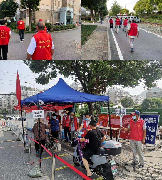 嚴守社區(qū)大門出入口的是棲霞山管委會和棲霞山園林管理處的退伍軍人黨員志愿者,他們一大早來到社區(qū),聽從社區(qū)安排,配合社區(qū)工作人員在社區(qū)出入口給來往人員測體溫、查看蘇康碼和做好外來人員登記,他們以軍人的作風和擔當挑起疫情防控工作的重擔。