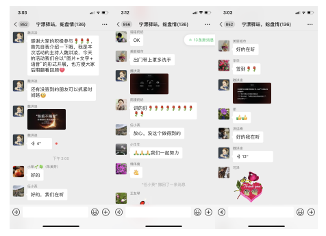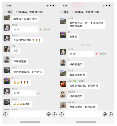 線上服務(wù)中,采用文字+圖片+語音方式開展。指導(dǎo)老師首先指出大家情緒焦慮的原因與應(yīng)對方式,隨后就大家普遍關(guān)注的健康、親子關(guān)系、就業(yè)、個(gè)性化需求問題提供相關(guān)建議與解決思路,獲得了參與居民的一致認(rèn)可,大家也在群內(nèi)分享起自己解決各類問題的經(jīng)驗(yàn),紛紛表示會(huì)積極配合防疫各項(xiàng)工作,共戰(zhàn)疫情。