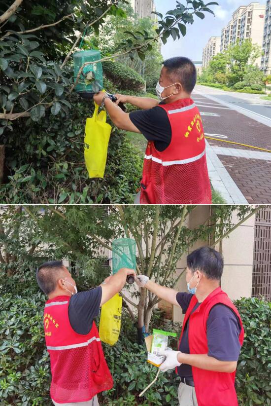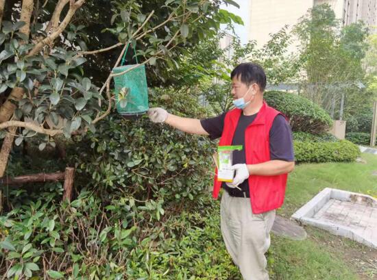 隨著氣溫變化,蚊蠅有了更適合繁殖的環(huán)境,為疾病傳播帶來很大風險。在石埠橋村社區(qū)殘疾人之家組織下,志愿者在小區(qū)內(nèi)各樹木上裝蒼蠅誘餌、誘捕蒼蠅。“秋天氣溫還比較高,但相對于夏天來說不那么熱,所以這個時候蒼蠅就很喜歡在外面飛來飛去,我們就要把蒼蠅除掉,避免它傳播細菌。”頂著高溫,經(jīng)過幾個小時的忙碌,志愿者終于在社區(qū)內(nèi)安裝完成了誘捕蒼蠅的籠子,為社區(qū)居民解決了一大困擾。