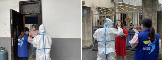 為了減少核酸檢測的排隊(duì)時(shí)間和成本,網(wǎng)格員和醫(yī)務(wù)人員一同上門幫居家檢測人員檢測核酸,讓群眾少跑腿。