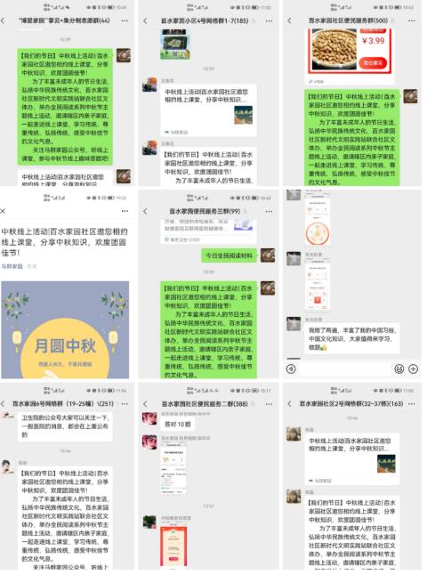 中秋節(jié)是我國的傳統(tǒng)節(jié)日,它代表著團圓、吉祥。人們在這一天賞月、猜謎、吃月餅,一家人團圓相聚。因為疫情原因,人們自覺減少了聚集,少了一些戶外活動的機會,卻多了許多陪伴家人的時間。百水家園社區(qū)精心準備了有關中秋節(jié)來歷和習俗的科普小視頻,趁此中秋佳節(jié)之際,給小朋友們普及傳統(tǒng)文化,為親子家庭提供學習、交流的素材。社區(qū)還給小朋友們留了“家庭作業(yè)”,設計了10道在線上課程中提過的中秋節(jié)知識趣味問答題,檢驗小朋友們的學習成果。活動中,不少家長通過微信群分享了他們和孩子一起學習的照片,并表示此類文化活動十分具有教育意義,希望能夠多多開展。