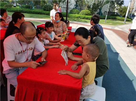 為了激發(fā)孩子的閱讀興趣,促進(jìn)親子之間的溝通交流,9月19日,南京市棲霞區(qū)棲霞街道攝山村新時(shí)代文明實(shí)踐站聯(lián)合攝山村婦聯(lián)在華僑城翡翠天域星園小區(qū)里開(kāi)展了一場(chǎng)趣味橫生的親子閱讀課堂,共有10余對(duì)親子參加本次繪本閱讀活動(dòng)。