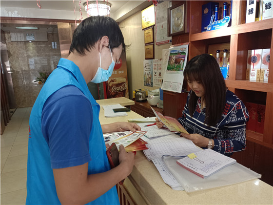 活動中,志愿者們走進沿街大小商鋪,采用通俗易懂的語言向商鋪經營者們講解了消防法律法規(guī)、消防安全責任制,普及了火災預防、火場逃生、火災自救等消防安全知識,為商戶發(fā)放宣傳手冊的同時,提醒他們要定期檢查商鋪的電線是否老化、滅火器材是否能正常使用、消防通道是否暢通等問題,及時整改落實,切實將火災隱患扼殺在搖籃里,避免火災事故的發(fā)生。