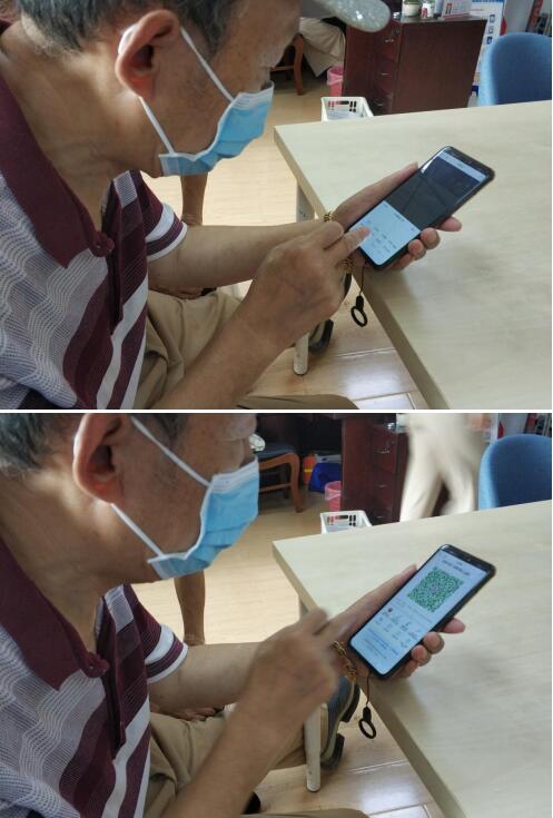 “打開江蘇政務(wù)服務(wù),先點擊立即注冊……”在蛇盤社區(qū)的健康碼辦理指導(dǎo)點,科普志愿者正在指導(dǎo)一對老年夫婦如何用智能手機(jī)日常使用健康碼。“為了讓他們能盡快上手,自如使用健康碼,我們在指導(dǎo)時,會讓老人盡可能多地自己操作,并在指導(dǎo)結(jié)束后現(xiàn)場讓老年人重復(fù)兩邊健康碼出示流程以加深印象。”科普志愿者如是說道。同時有個別老人沒有智能手機(jī),科普志愿者會幫助老人申請并幫助其將健康碼打印出來,方便老人出行。