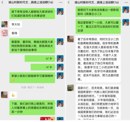 每段歷史都不能被遺忘,每位英雄都值得被紀(jì)念。為引導(dǎo)轄區(qū)青少年緬懷革命烈士,弘揚(yáng)烈士精神,培養(yǎng)青少年愛國(guó)主義精神,在9月30日烈士紀(jì)念日到來之際,南京市江寧區(qū)湯山街道湖山村新時(shí)代文明實(shí)踐站聯(lián)合婦聯(lián)、關(guān)工委組織開展線上愛國(guó)教育活動(dòng)。