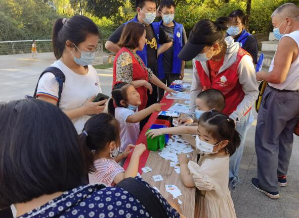 新時代文明實踐志愿者們在社區(qū)內(nèi)設(shè)點,向路過的居民宣傳垃圾分類知識,并發(fā)放宣傳單頁,讓他們詳細(xì)地了解垃圾的幾種分類。志愿者們引導(dǎo)社區(qū)的小朋友參與小游戲,在給他們講述完垃圾分類知識后,讓他們將寫著不同垃圾的小卡片扔進(jìn)對應(yīng)的迷你分類垃圾桶里,讓他們從小養(yǎng)成垃圾分類的習(xí)慣,帶動家庭、社區(qū)的行為改變。為了鼓勵居民的參與,志愿者們向他們發(fā)放食用鹽、垃圾袋等生活用品。