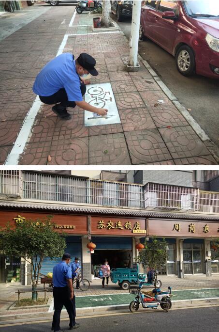“停車難”已成為城市治理的重難點問題,為破解這一難題。執(zhí)法大隊根據(jù)“應劃盡劃”的原則,在前期實地摸排,科學規(guī)劃的基礎上,合理確定非機動車停車位施劃位置,自行制作工具,按照非機動車停車標識和相關尺寸要求,描線刷漆,合理施劃非機動車停車位,目前,新增非機動車停車位10余處,營造了良好的停車環(huán)境。