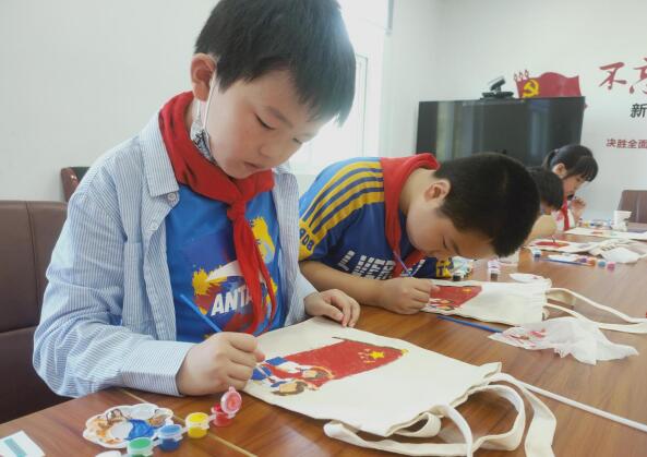 當(dāng)天上午,青少年來(lái)到了新時(shí)代文明實(shí)踐站,在志愿者們的引導(dǎo)下,圍坐在桌子邊。在簡(jiǎn)單的開(kāi)場(chǎng)白后,志愿者向青少年介紹了活動(dòng)的主要內(nèi)容,帶領(lǐng)他們手繪國(guó)慶主題帆布包。青少年將需要的顏料擺放在手邊,用畫(huà)筆蘸滿(mǎn)顏料,開(kāi)始在帆布包上畫(huà)了起來(lái)。一面面五星紅旗、一座座天安門(mén)的圖案在青少年的手下現(xiàn)出鮮艷的色彩,青少年們開(kāi)心極了,互相分享自己的成果,現(xiàn)場(chǎng)的氛圍熱鬧和諧。