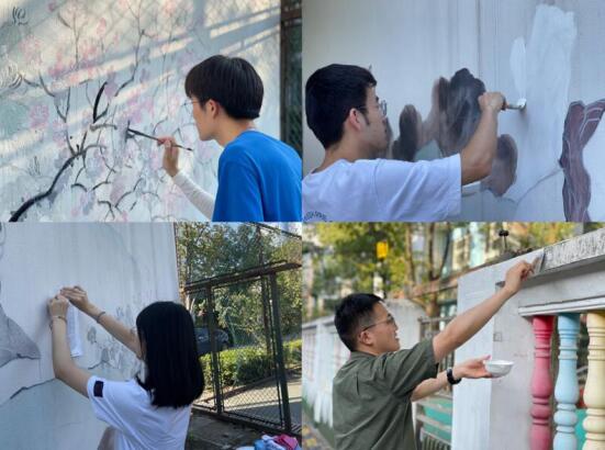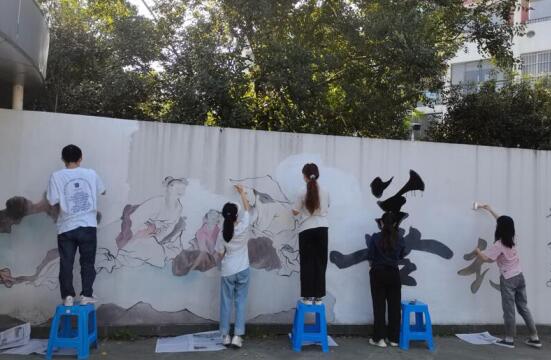 在本次活動中,來自南京理工大學(xué)公共事務(wù)學(xué)院的學(xué)生們作為墻繪的主力軍,將“農(nóng)村美起來”和“綠水青山”作為活動的主題,以社區(qū)白墻為畫板,繪出美好鄉(xiāng)村生活。在創(chuàng)作過程中,團(tuán)隊(duì)成員分工明確,清理場地、勾勒底稿、墻體上色,迅速進(jìn)入工作狀態(tài)。在大家的共同努力下,一幅幅生動的圖畫躍然墻上。此外,團(tuán)隊(duì)成員還對社區(qū)內(nèi)的幼兒園外墻進(jìn)行了粉刷,孩子們積極參與,從如何調(diào)色到怎樣繪制,再到如何保護(hù)社會環(huán)境,大學(xué)生們一步一步向孩子們傳授著墻繪的技巧。