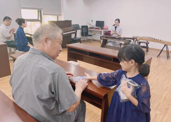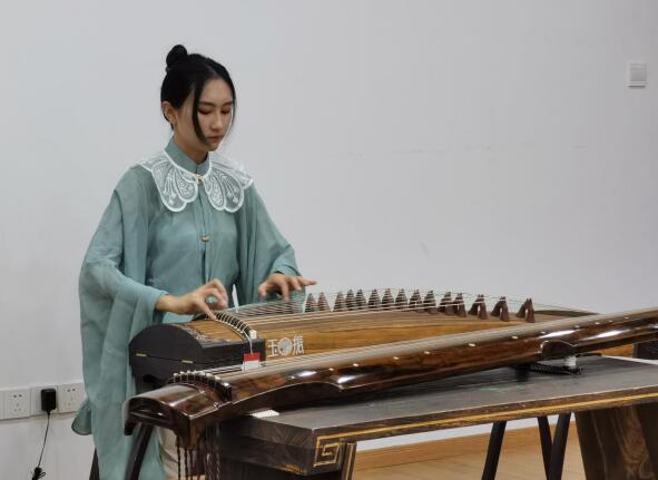 當(dāng)天,包括老黨員、退伍軍人在內(nèi)的轄區(qū)老年人來到了社區(qū)的社會(huì)化治理服務(wù)中心,在工作人員的指引下落座。上午九點(diǎn),子啊芮齡藝術(shù)空間負(fù)責(zé)人兼任活動(dòng)的主持人的主持下,活動(dòng)拉開帷幕?!蛾P(guān)山月》、《秋江夜泊》、《半壺紗》、《長門怨》等曲目那悅耳的琴聲在表演者的精彩演繹下從指尖流淌而出,古琴、古箏、鋼琴,東西方不同的樂器在這里完美交融,在場的老年人不禁沉醉這美妙的樂聲中。當(dāng)《青城山下白素貞》這首熟悉的曲調(diào)響起時(shí),有的老年人甚至跟著輕輕哼唱起來,整場活動(dòng)現(xiàn)場氛圍十分融洽。