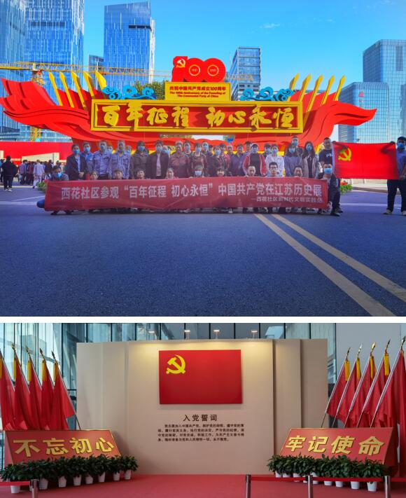 深入開展好黨史學(xué)習(xí)教育,2021年10月12日,南京市棲霞區(qū)棲霞街道西花社區(qū)黨支部依托新時代文明實踐站共組織黨員、居民代表40余人參觀“‘百年征程 初心永恒’——中國共產(chǎn)黨在江蘇歷史展”。