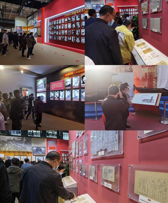 進(jìn)入展覽首先映入眼簾的是“百年征程,初心永恒”的巨大展板,一路走過南湖紅船、“京電號”、春雷水泥船、“蛟龍?zhí)?rdquo;的模型。室內(nèi)展區(qū),一張張模糊的照片、一份份泛黃的檔案、還有見證著歷史的實物文物,生動地向我們展示了百年間中國共產(chǎn)黨在江蘇從無到有、不斷壯大的歷史偉業(yè)。