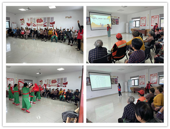 一大早,活動室里就傳來了陣陣的節(jié)日喜慶聲,20多名老人歡聚一堂,個個喜氣洋洋。大家坐在一起說說笑笑,場面甚是熱鬧。“說左手、舉右手”的反口令動作熱身游戲、陽節(jié)習俗知識問答、說唱《健康拍手歌,活動伊始,志愿者給大家送上節(jié)日的美好祝福,并與志愿者互動起來,在各種形式的活動游戲的調(diào)動下,現(xiàn)場氣氛一下子活躍起來?,F(xiàn)場,志愿者們還給老人表演了綢帶舞《擁軍秧歌》和歌曲演唱《?;丶铱纯础?,精彩紛呈的節(jié)目讓現(xiàn)場氣氛高推向高漲,在場居民掌聲不斷。