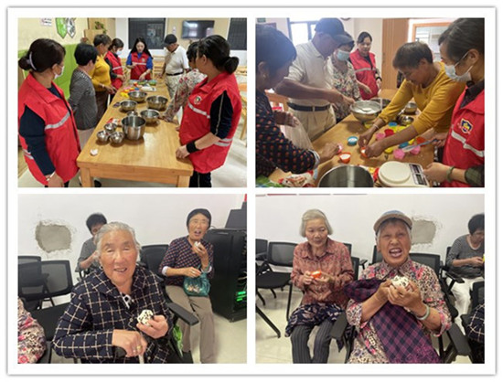 中國的每一個傳統(tǒng)佳節(jié)總有一個象征性的食物,重陽糕則是重陽節(jié)必備。重陽糕制作環(huán)節(jié),老人們制作熱情都很高漲,在志愿者的協(xié)助下依次將制作材料按比例放入碗中,攪拌好倒入模具中等待上鍋蒸發(fā)。隨著一個個熱乎乎,軟軟的,香甜的重陽糕出鍋時,老人臉上樂開了花。