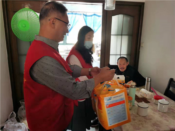 首先堯安殘聯(lián)的工作人員去到的是楊志成老人家中,楊老今年十月就八十周歲了,他因?yàn)榍皫啄曛酗L(fēng)導(dǎo)致肢體殘疾。一進(jìn)門,楊老的妻子便熱情招待了殘聯(lián)工作人員,楊老坐在沙發(fā)上,看得出來,因?yàn)樯鐓^(qū)殘聯(lián)的到來他很開心。殘聯(lián)的工作人員也熱心的詢問楊老的身體情況,楊老的妻子告訴我們:“他的身體還可以,平時(shí)天氣好了也會扶著他下樓散散步。這幾天天氣不好,他只能在家里走走。偶爾還能幫我剝剝蒜。”殘聯(lián)工作人員聽后連連夸贊楊老,并囑咐他們,近期降溫了,要注意身體。這次慰問,殘聯(lián)為楊老準(zhǔn)備了尿不濕、護(hù)理墊等生活用品,希望對他夜晚睡覺有所幫助。隨后,在楊老妻子的感謝聲中,堯安社區(qū)殘聯(lián)離開了楊老家,前往其他殘疾老人家中。