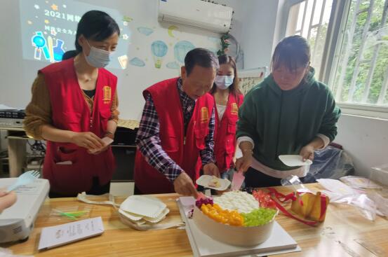活動(dòng)的最后,堯安新村社區(qū)居家養(yǎng)老服務(wù)站還為老人們準(zhǔn)備了生日蛋糕,給老人們過(guò)一個(gè)集體生日。參加活動(dòng)的李澤民叔叔對(duì)我們說(shuō):“每年的重陽(yáng)節(jié)居家養(yǎng)老服務(wù)站和社區(qū)都會(huì)給老人們組織豐富的活動(dòng)。今年還特意為我們這些老家伙準(zhǔn)備了生日蛋糕,真的很用心!”為在場(chǎng)的每位老人端上蛋糕后,時(shí)間銀行志愿者還為幾位當(dāng)天過(guò)生日的老人送上了生日禮物,祝愿在場(chǎng)的老人都能幸福健康,長(zhǎng)長(zhǎng)久久。
