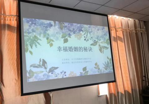 為維系夫妻間的親密關(guān)系、調(diào)適夫妻關(guān)系的沖突、婚姻家庭關(guān)系對孩子成長的影響宣傳,10.21日上午9:00,江寧區(qū)婚姻登記服務(wù)中心聯(lián)合南京樂享社會組織在江寧街道清修社區(qū)開展了主題為“幸福婚姻的秘訣”講座活動。讓居民更加了解夫妻間正確的相處模式,提高人們的幸福感。