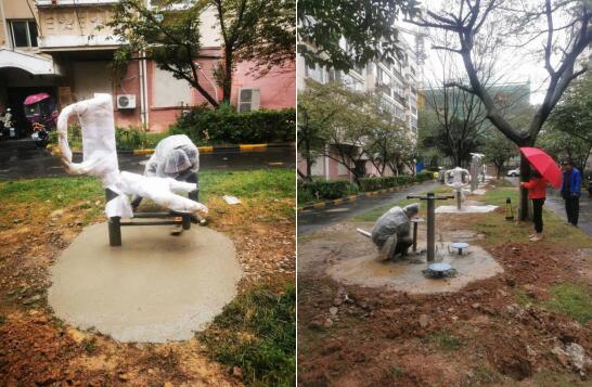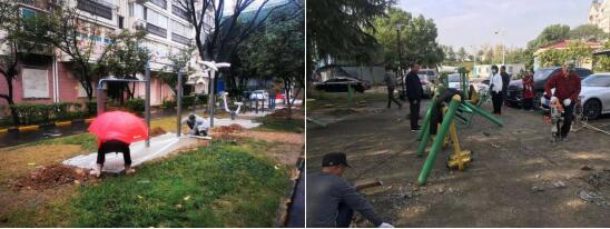 在安裝現(xiàn)場,社區(qū)工作人員協(xié)助安裝師傅做好場地選址以及安裝所需的各項(xiàng)工作。在社區(qū)工作人員的幫助下,大大提升了此次更換健身器材的工作效率,很快便完成了器材的更換。
