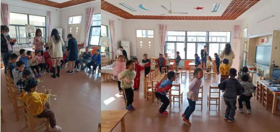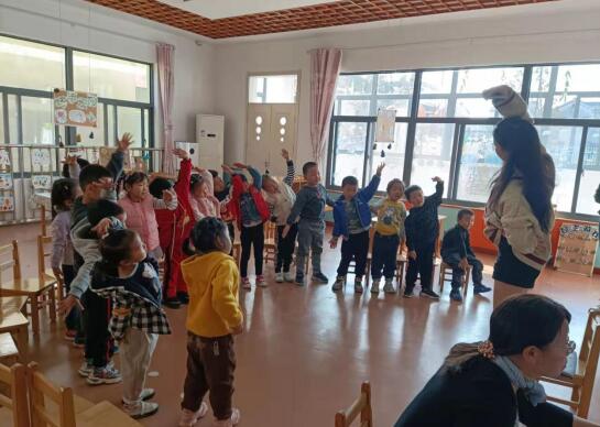 活動伊始,在老師的主持下,幼兒們進(jìn)行熱身運(yùn)動,他們面對老師圍成半圈,跟著老師的動作伸伸胳膊,彎彎腰,動動脖子,扭扭手,在運(yùn)動中將自己的身體調(diào)整至適合運(yùn)動的狀態(tài)。熱身操后,老師帶著幼兒們做起游戲,一會兒帶著大家圍著圈,雙手背在身后,學(xué)著小兔子的模樣蹦蹦跳跳,鍛煉著自己跳躍能力;一會兒讓幼兒們坐在凳子上,手里拿著各種玩具,隨著音樂進(jìn)行敲擊,培養(yǎng)節(jié)奏感。歡樂的游戲時光結(jié)束后,志愿者給幼兒們發(fā)放了扭扭棒,老師向幼兒們講解了玩法,幼兒將扭扭棒彎曲成自己喜歡的如花朵、葉子、小動物等形狀。大家還把它們匯聚到一起,發(fā)揮自己的奇思妙想,編出一個個妙趣橫生的小故事。