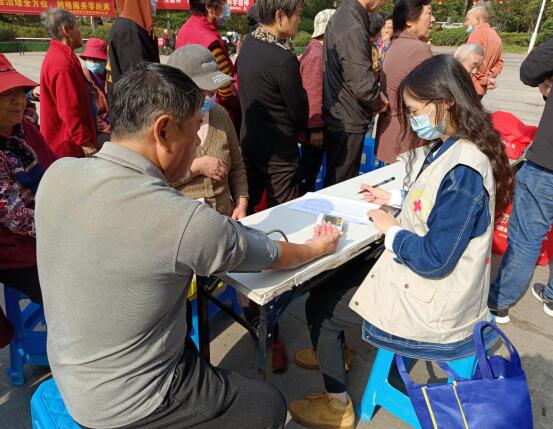 “大家都不要著急,排好隊,一個一個來......”活動現(xiàn)場,志愿者一邊引導現(xiàn)場秩序要求前來參加義診服務的居民根據參與項目依次排隊,一邊為居民進行血壓、血糖的測量,耐心解答前來咨詢的老年群體對高血壓病的許多疑惑,如怎樣合理用藥、如何有效預防高血壓以及日常生活中控鹽控壓的注意事項等健康知識。對于體檢中發(fā)現(xiàn)指標異常的老年人,工作人員則詳細地詢問了他們的日常生活習慣以及身體狀況,并建議他們定期復查,及時根據健康狀況調整治療方案。