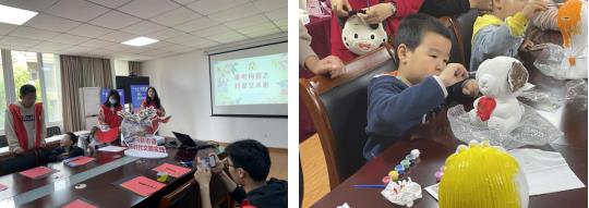 周六上午家長們暫停一周繁忙的工作節(jié)奏,來到社區(qū)活動室和孩子們一起合作石膏彩繪?;顒又校∨笥褌儌€個專注地拿著手中的畫筆,描繪著自己作品,赤橙黃綠青藍(lán)紫……不同的顏色繪出不同的天地,盡情釋放自己天馬行空的創(chuàng)意,讓孩子們在游戲中成長,在揮舞畫筆的同時,培養(yǎng)對待事物的耐心與認(rèn)真態(tài)度,同時增強他們的動手能力和想象力?;顒咏Y(jié)束后,孩子將自己親手彩繪的世上獨一的卡通造型帶回家中,作為自己收藏的獨特禮物。