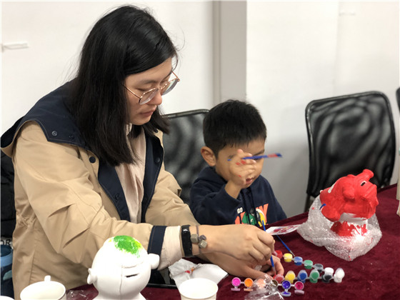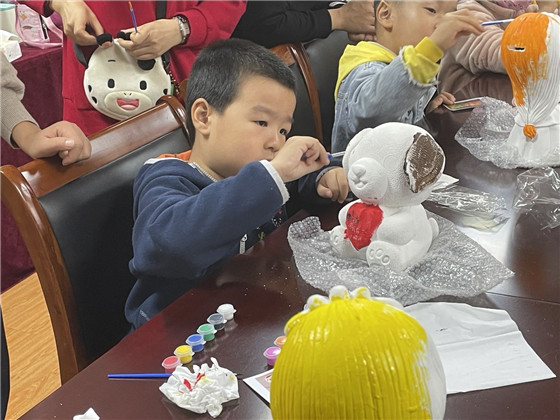 周六上午家長們暫停一周繁忙的工作節(jié)奏,來到社區(qū)活動室和孩子們一起合作石膏彩繪?;顒又?,小朋友們個個專注地拿著手中的畫筆,描繪著自己作品,赤橙黃綠青藍(lán)紫……不同的顏色繪出不同的天地,盡情釋放自己天馬行空的創(chuàng)意,讓孩子們在游戲中成長,在揮舞畫筆的同時,培養(yǎng)對待事物的耐心與認(rèn)真態(tài)度,同時增強他們的動手能力和想象力?;顒咏Y(jié)束后,孩子將自己親手彩繪的世上獨一的卡通造型帶回家中,作為自己收藏的獨特禮物。