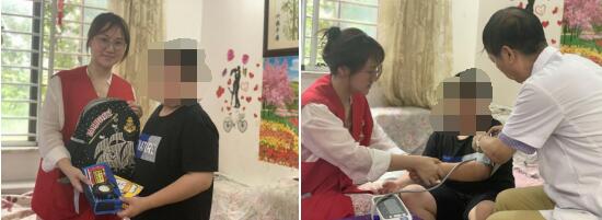 家庭醫(yī)生進(jìn)社區(qū),體檢服務(wù)進(jìn)家庭。翠林山莊社區(qū)兒童主任和堯化街道衛(wèi)生服務(wù)中心的家庭醫(yī)生帶著血壓儀等醫(yī)療器械和所需的尿墊尿不濕、書包文具等物品來(lái)到兩名困境兒童劉瀚瀚(化名)和孫小小(化名)家中。在困境兒童的家中,家庭醫(yī)生借助專業(yè)醫(yī)療器械對(duì)于困境兒童的身體狀況進(jìn)行全面檢查,讓無(wú)法出行的困境兒童早了解自身的身體狀況,做到早發(fā)現(xiàn)、早診斷、早治療。同時(shí)他們?yōu)槔Ь硟和腿チ藭?、學(xué)習(xí)用品,并詳細(xì)了解了孩子的學(xué)習(xí)生活情況及實(shí)際困難,鼓勵(lì)他們樹(shù)立信心,自強(qiáng)不息,勇敢面對(duì)困難,將來(lái)成為對(duì)社會(huì)有用的人。社區(qū)不僅對(duì)困境家庭困境兒童進(jìn)行物質(zhì)上的幫助,更重要的是對(duì)困境兒童和這個(gè)家庭進(jìn)行精神上的關(guān)懷,讓他們感受到社區(qū)大家庭的關(guān)愛(ài)與溫暖。