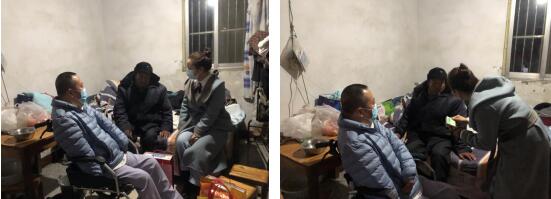 小分隊(duì)于11月26日下午6點(diǎn)順利抵達(dá)灌南,此時(shí)天已經(jīng)完全黑了,在當(dāng)?shù)刂驹刚叩膸ьI(lǐng)下連夜到當(dāng)?shù)匚繂柪щy群體,在去往第一戶家庭的路上,由于車輛不能完全開到家中,需要步行幾百米的泥濘小路,君子老師在幾名志愿者的配合幫助下抵達(dá)受助群體家中。這是一位80多歲高齡的孤寡老人,平時(shí)都靠鄰居照顧,工作人員詳細(xì)了解老人近期身體狀況,耐心詢問家里的生活困難,并送上了冬被、大米、牛奶,機(jī)構(gòu)曹老師還送上了慰問金,老人看到君子老師坐在輪椅上還來幫助自己,深受感動(dòng),臨走時(shí)緊握君子老師和曹老師雙手,眼眶閃爍著淚花,激動(dòng)地說:“感謝你們來看望我!”。