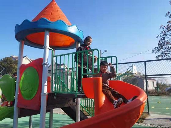 廣場上,有的孩子興奮地表示自己要當(dāng)?shù)谝粋€滑滑梯的人,有的孩子則陷入既想玩有不敢玩的情緒中,還有的孩子在一旁為正在滑滑梯的小伙伴歡呼著......歡樂的游戲時光在陽光的照射下閃耀著珍貴的光芒,一幕幕都是留守兒童們“時光相冊”里的寶貴一頁。