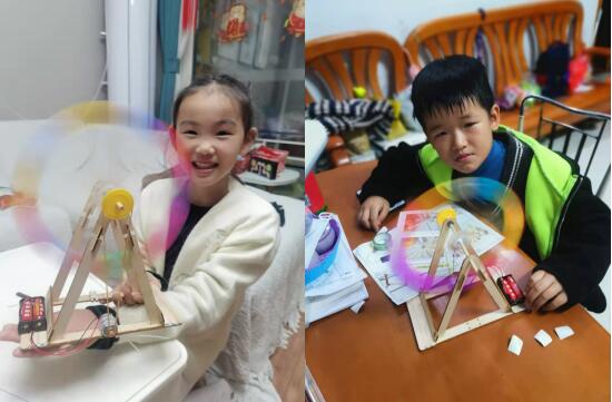 活動(dòng)伊始,建設(shè)村志愿者便將做好的摩天輪發(fā)在群里進(jìn)行展示,精美的手工成品頓時(shí)讓小朋友們產(chǎn)生了濃厚的興趣,群里氣氛立即活躍起來。志愿者向小朋友講解制作方法,發(fā)送制作視頻及制作步驟圖給大家看,孩子們則跟著一步一步做,個(gè)別跟不上的孩子,志愿者還會(huì)給予耐心的指導(dǎo)。大家邊看邊做,慢慢學(xué)習(xí)摸索經(jīng)驗(yàn),互相借鑒??粗种械淖髌芬粋€(gè)個(gè)拍照發(fā)送到群里給大家欣賞,小朋友們個(gè)個(gè)都充滿成就感。