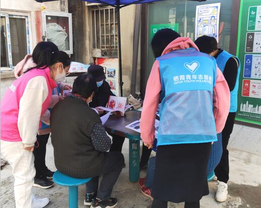 志愿者們向居民介紹和宣傳了我們棲霞街道的特色社區(qū)教育讀本《禪意小鎮(zhèn)、詩(shī)詠棲霞》。這個(gè)讀本中匯集了大量以棲霞山為主題的各類詩(shī)歌美文,其中還有我們身邊的居民自己創(chuàng)作的詩(shī)歌作品,非常受居民們的喜愛。志愿者們還為視力欠佳的老年居民進(jìn)行了讀本和部分書籍選段的朗讀,獲得了居民的一致好評(píng)。
