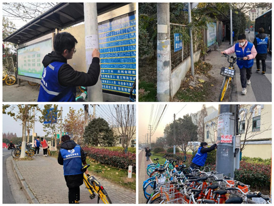冬天逐漸轉(zhuǎn)冷,樹(shù)葉變得枯黃,人行道上鋪滿(mǎn)了凋零的樹(shù)葉。志愿者們將落葉掃到一處,給行人們清出了一條暢通的道路;道路兩旁的電線桿被“猖獗”的小廣告占據(jù),志愿者們不厭其煩地逐一撕下,將干凈的“臉面”還給它;到處亂停的共享單車(chē)既影響通行又影響市容,志愿者們一輛輛地將其搬到劃線區(qū)域內(nèi),排成整整齊齊的一排……