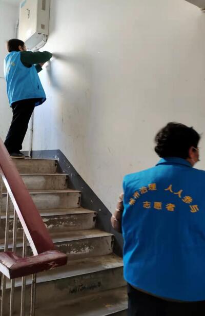 志愿者分小組進(jìn)行工作,大家?guī)夏ú?,水桶,板刷,小鏟等工具來到轄區(qū)開始清理。此次活動(dòng)主要針對小區(qū)樓道、墻面、公共設(shè)施等亂張貼的小廣告、雜物進(jìn)行清理,小廣告不僅影響社區(qū)美觀,其中包含的一系列虛假信息還會(huì)導(dǎo)致一些居民上當(dāng)受騙,鏟除小廣告勢在必行。在清理現(xiàn)場,大家拿著小鏟、噴壺等工具,對樓道的墻體、樓道及樓道扶手上的小廣告進(jìn)行了徹底清理,還有一些粘貼牢固不易清理的小廣告,志愿者用手一點(diǎn)一點(diǎn)將其撕掉。