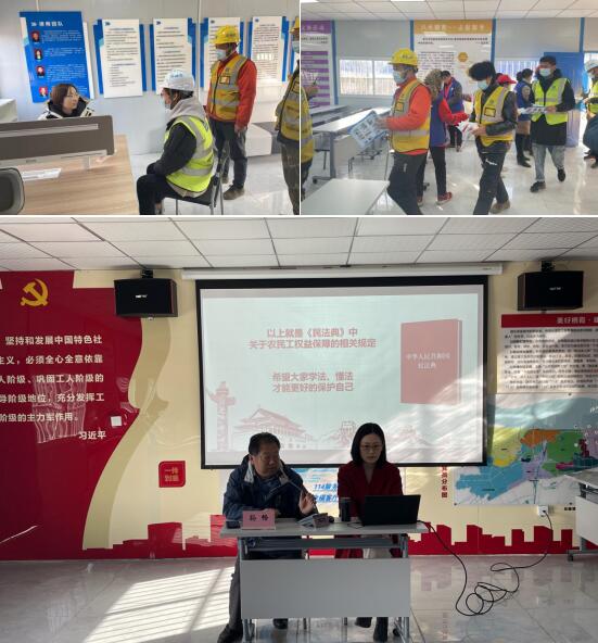 為切實幫助農(nóng)民工群體學(xué)好用好民法典這部“社會生活的百科全書”,進一步提升農(nóng)民工知法守法用法的意識和能力,12月17日,南京市棲霞區(qū)棲霞街道江南廠社區(qū)聯(lián)合棲霞街道總工會、司法所走進建筑工地,組織開展以“民法典進工地 ‘典’亮美好生活”為主題的活動。
