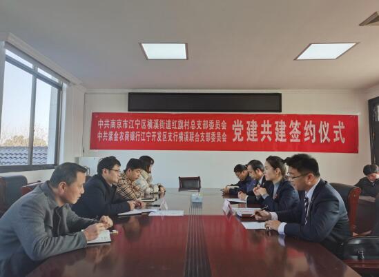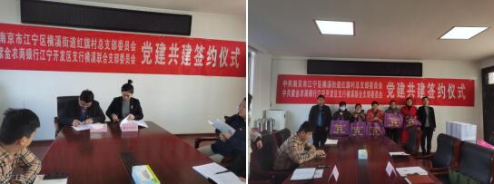 12月17日上午,江寧區(qū)橫溪街道紅旗村黨總支與紫金農商銀行江寧開發(fā)區(qū)支行橫溪聯(lián)合支部委員會開展黨建共建簽約儀式。