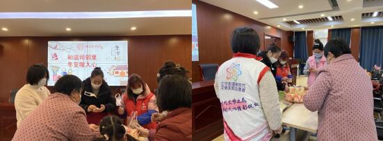 社區(qū)志愿者早上八點(diǎn)半就開始張羅起來,志愿者們分工合作分別洗菜、切菜、和餡料、燒水、煮餃子……一切都有條不紊地進(jìn)行。一會(huì)兒工夫一個(gè)個(gè)各具特色的餃子擺滿托盤,等待餃子出鍋,志愿者分別裝好袋。