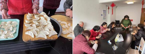 活動(dòng)當(dāng)天,居家養(yǎng)老服務(wù)站的工作人員為社區(qū)居民準(zhǔn)備好了材料,參加活動(dòng)的趙素蘭阿姨早早就來(lái)到居家養(yǎng)老服務(wù)站幫助工作人員把餡料調(diào)好味,把桌上鋪上桌布,然后和其他幾位阿姨一起和面。當(dāng)天,大約有十多位居民參加了活動(dòng)。叔叔阿姨們坐在一起包餃子,有說(shuō)有笑,十分和諧。餃子包好后,忙碌了一上午的叔叔阿姨們圍坐在桌邊,一起分享剛剛出鍋的美味餃子??紤]到轄區(qū)內(nèi)還有許多獨(dú)居老人,社區(qū)工作人員還將其中的一些送到了他們家中,與這些老人一同分享節(jié)日的溫情。