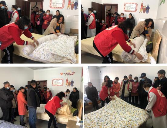 在河北社區(qū)殘疾人之家工作人員的帶領(lǐng)下,殘疾人來到殘疾人之家日間照料活動(dòng)室,學(xué)習(xí)套被套、疊被子、系鞋帶等日常生活技能。工作人員事無巨細(xì)的教導(dǎo)著殘疾人疊被子,并耐心手把手的將每一步驟都教給大家。