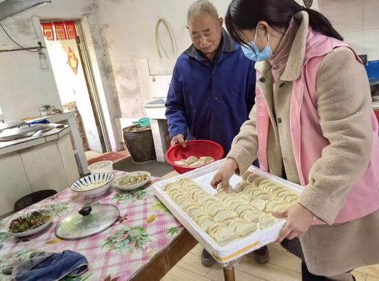 工作人員還將包好的餃子送給了附近的老人,每到一戶,志愿者陪老人拉家常,聊心聲,言語中透露著對(duì)老人們濃濃的關(guān)愛,到處洋溢著“家”的味道、“家”的溫馨。