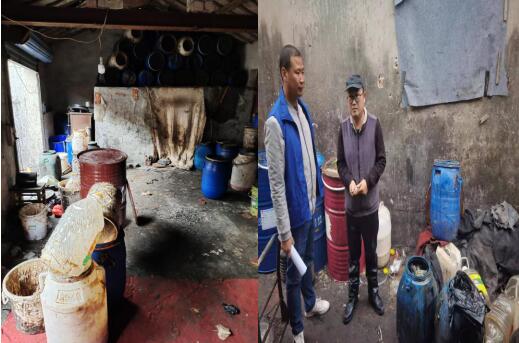 網(wǎng)格員楊勇在日常巡查小段山工業(yè)園時,發(fā)現(xiàn)道路上有兩條不尋常的車輪印且油跡閃亮。循著油跡方向,楊勇來到一座緊閉大門的院子,楊勇懷疑那可能是一個小作坊,敲開院門,一股刺鼻的油煙味撲面而來,隨之映入眼簾的是兩個工人、一臺機(jī)器在熱火朝天的工作,地面上散放著幾十個油桶,有的是裝滿泔水,有的是渾濁的油,典型的地溝油加工作坊。楊勇立即報(bào)告村委會,聯(lián)系相關(guān)執(zhí)法部門,依法依規(guī)地取締了該處地溝油作坊。