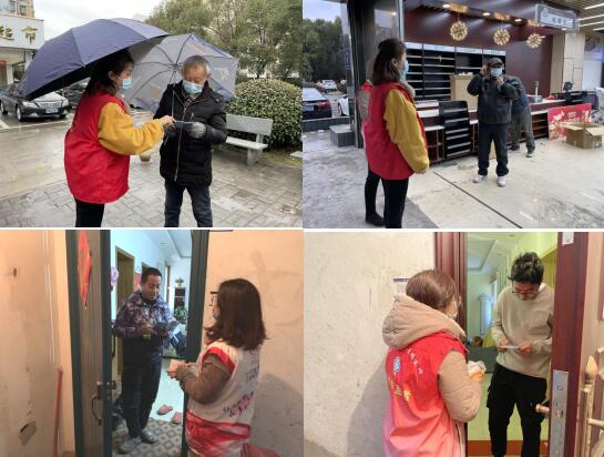 他們不僅在小區(qū)廣場上宣傳,同時也走到小區(qū)內(nèi)超市,走到樓棟里,上門給居民發(fā)放防疫宣傳手冊,倡導(dǎo)居民遵守疫情防控要求,做到勤洗手、常通風(fēng)、戴口罩、不聚集。