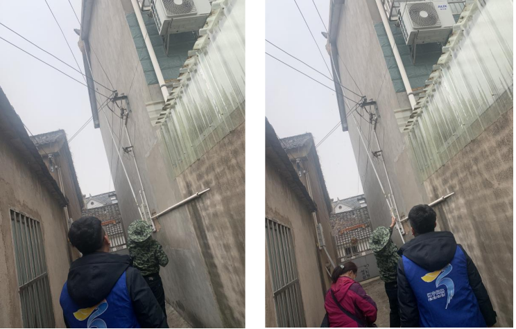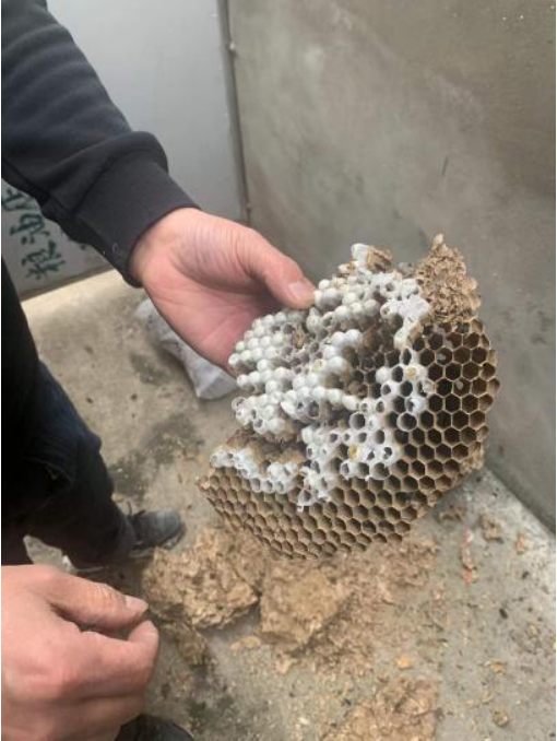 近日,南京市湖熟街道河南社區(qū)002號網(wǎng)格員在巡查居民樓時發(fā)現(xiàn),居民樓之間有一只大馬蜂窩,給周圍居民的生活造成非常大的安全隱患。網(wǎng)格員在第一時間與社區(qū)領(lǐng)導(dǎo)取得聯(lián)系,社區(qū)領(lǐng)導(dǎo)高度重視,在短時間內(nèi)安排專業(yè)的清蜂窩師傅進(jìn)行清除。