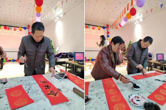 在君子殘疾人之家,書法老師們潑墨揮毫,大顯身手,行草隸楷,寫下一幅幅彰顯書法文化神韻,寓意吉祥如意的春聯(lián)送給殘障、孤寡老人,表達了書法家們對殘障、孤寡老人的新年祝福和關(guān)懷之情。