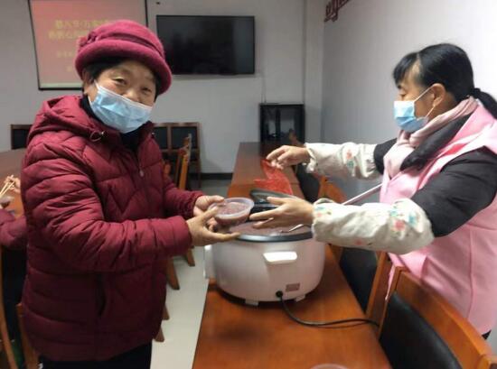 社工和志愿者提前一天準備好臘八粥所需材料,紅豆,桂圓,蓮子,枸杞,黑米等材料,并提前將這些材料用清水泡發(fā)。1月10日天未亮,志愿者開始了臘八粥的制作。經(jīng)過一個多小時的熬制,熱騰騰的臘八粥出鍋了。