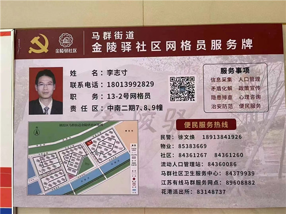 近期,南京市棲霞區(qū)馬群街道金陵驛社區(qū)所轄小區(qū)樓棟內(nèi)都掛上了一張公示牌,上面不僅包括轄區(qū)地圖、網(wǎng)格員照片、身份信息、聯(lián)系方式等,還附有便民服務(wù)熱線、網(wǎng)格群二維碼。