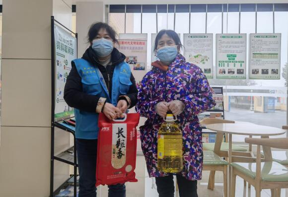 物業(yè)保潔人員是維護(hù)社區(qū)環(huán)境的“美容師”,在工作中,他們兢兢業(yè)業(yè)、勤勤懇懇,用自己的雙手將轄區(qū)環(huán)境面貌打扮的干凈、整潔。疫情期間,更是堅(jiān)守崗位,加強(qiáng)消殺,為居民的生命健康和身心舒適送去保障??紤]到保潔人員隊(duì)伍中有一名保潔視力較弱,家庭困難,新春之際,志愿者向她送去了新春的祝福以及慰問品,希望她在新的一年里能夠身體健康、生活如意、事事順心。拎著米和油,保潔張阿姨非常感動(dòng)說道:“這些事情本來就是我應(yīng)該做的,也很感謝你們對(duì)我的關(guān)心和照顧,你們一直犧牲自己的時(shí)間義務(wù)服務(wù)居民,也是我的榜樣。”