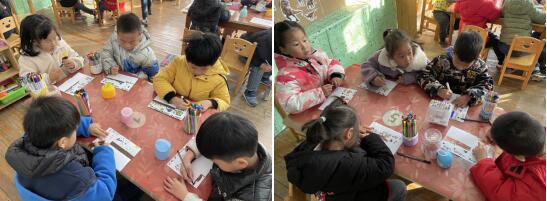 活動(dòng)前期,老師帶領(lǐng)孩子們?cè)诓藞@中種下了大蒜,“看,它扁扁的呈球形,中間有一個(gè)小柱子,外邊穿了很多層衣服,里面又是一瓣一瓣的,這就是大蒜。”在老師的講解和示范下,孩子們認(rèn)識(shí)了大蒜,也提起了對(duì)種蒜、觀察蒜的興趣。將大蒜種在菜園中后,孩子們定期前去觀察大蒜的長(zhǎng)勢(shì),看到小小的蒜苗抽芽,在陽(yáng)光、泥土和水的滋養(yǎng)下蓬勃生長(zhǎng),孩子們的心中也充滿(mǎn)了喜悅。每次觀察完大蒜后,孩子們都會(huì)用彩筆畫(huà)出自己的觀察成果,菜園、太陽(yáng)、灑水壺、蒜苗……最后再標(biāo)記日期,就成為了一幅幅“觀察日記”。