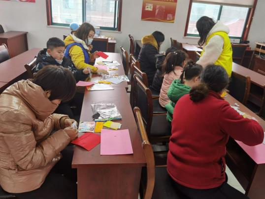 讀完紅色繪本,志愿者們還帶著親子家庭一起做手工,大家將材料分解下來,再重新粘貼在底板上,形成一幅幅主題畫,表達自己對祖國的無限熱愛。活動結(jié)束后,工作人員和志愿者向大家分發(fā)了小禮物,祝福他們度過快樂的新年。